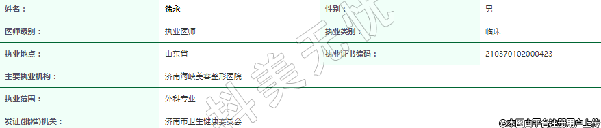 主要執(zhí)業(yè)機構(gòu):濟南海峽美容整形醫(yī)院