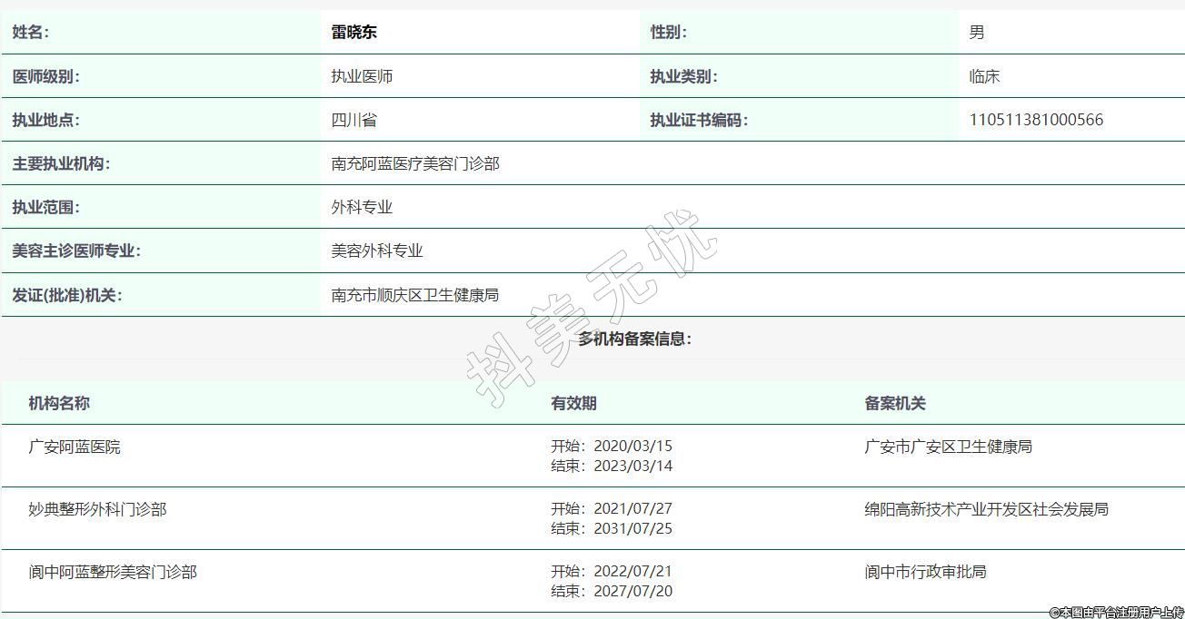 主要執(zhí)業(yè)機構(gòu):南充阿藍醫(yī)療美容門診部