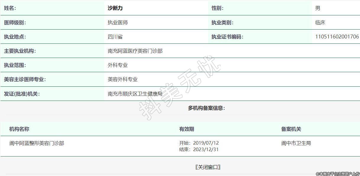 主要執(zhí)業(yè)機(jī)構(gòu):南充阿藍(lán)醫(yī)療美容門(mén)診部