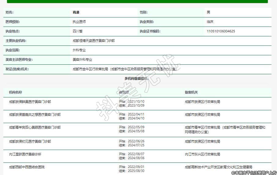 主要執(zhí)業(yè)機(jī)構(gòu):成都恒博天姿醫(yī)療美容門診部
