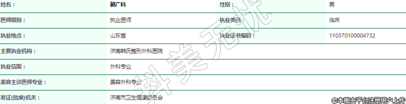 主要執(zhí)業(yè)機構:濟南韓氏整形外科醫(yī)院