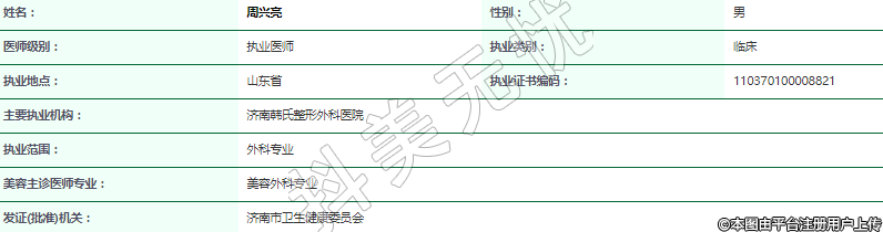 主要執(zhí)業(yè)機(jī)構(gòu):濟(jì)南韓氏整形外科醫(yī)院