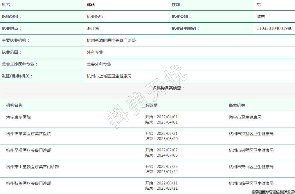 主要執(zhí)業(yè)機(jī)構(gòu):杭州新清吟醫(yī)療美容門(mén)診部