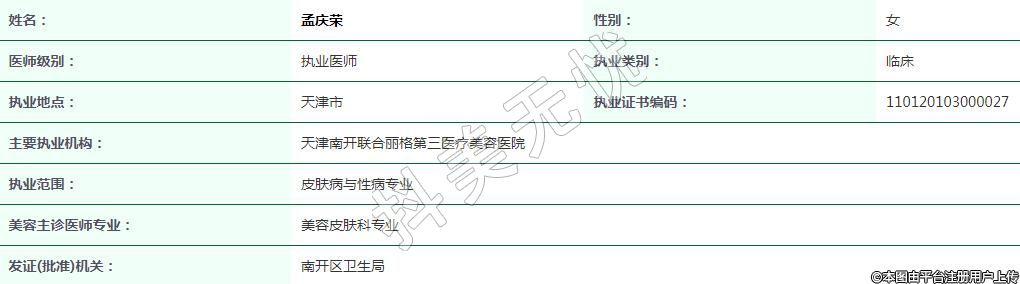 主要執(zhí)業(yè)機構(gòu):天津南開聯(lián)合麗格第三醫(yī)療美容醫(yī)院