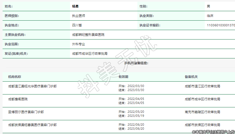 主要執(zhí)業(yè)機(jī)構(gòu):成都韓妃整形美容醫(yī)院