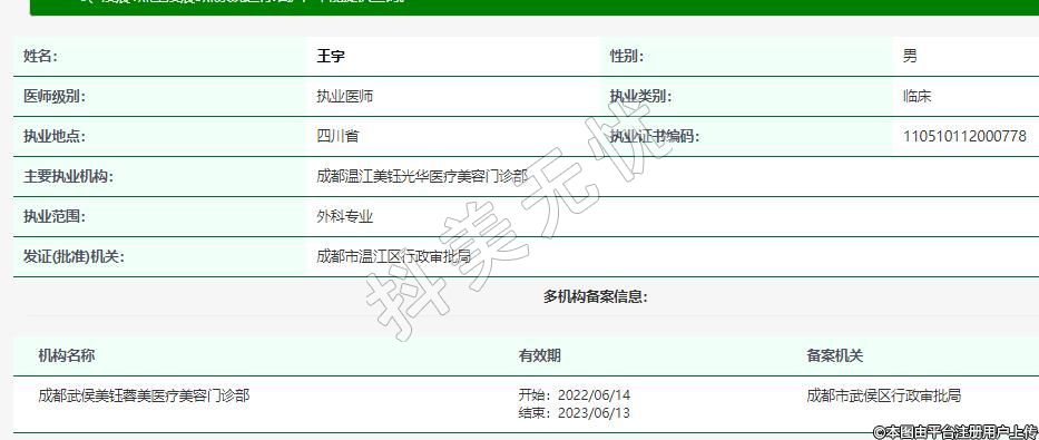 主要執(zhí)業(yè)機(jī)構(gòu):成都溫江美鈺光華醫(yī)療美容門診部