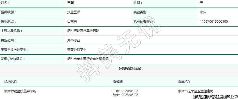 主要執(zhí)業(yè)機構(gòu):煙臺青韓醫(yī)療美容醫(yī)院