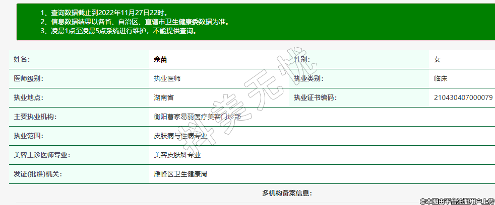 主要執(zhí)業(yè)機(jī)構(gòu):衡陽曹家易麗醫(yī)療美容門診部
