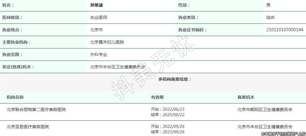北京嘉禾婦兒醫(yī)療美容執(zhí)業(yè)醫(yī)師
