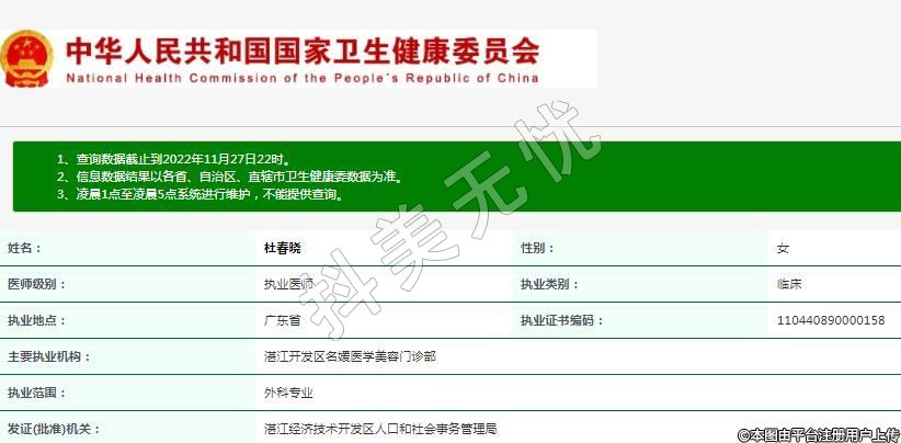 主要執(zhí)業(yè)機(jī)構(gòu):湛江開發(fā)區(qū)名媛醫(yī)學(xué)美容門診部