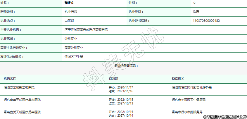 主要執(zhí)業(yè)機構(gòu):濟寧任城壹美天成醫(yī)療美容醫(yī)院