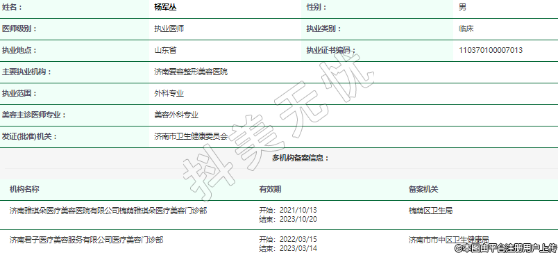 機(jī)構(gòu)名稱:濟(jì)南雅琪朵醫(yī)療美容醫(yī)院有限公司槐蔭雅琪朵醫(yī)療美容門診部