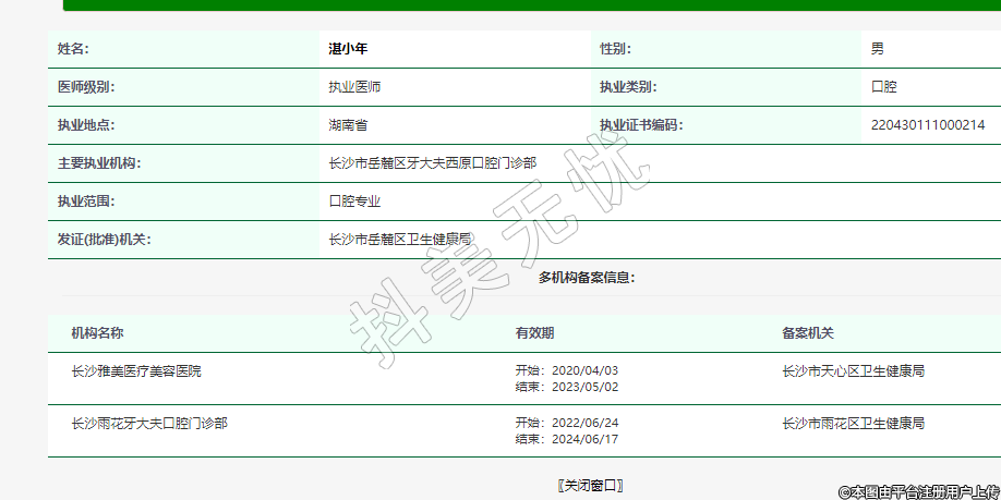 主要執(zhí)業(yè)機(jī)構(gòu):長(zhǎng)沙市岳麓區(qū)牙大夫西原口腔門診部
