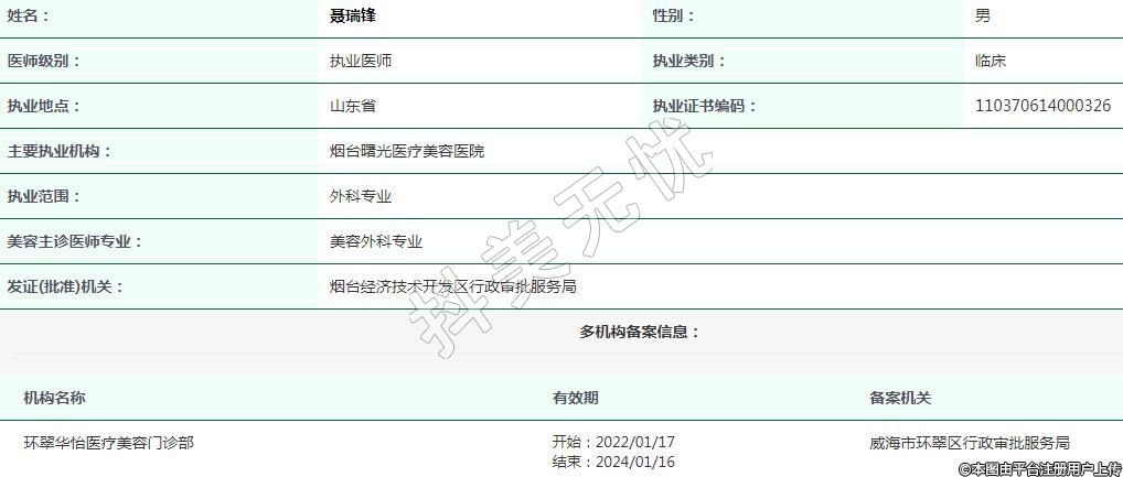 煙臺曙光醫(yī)療美容執(zhí)業(yè)醫(yī)師