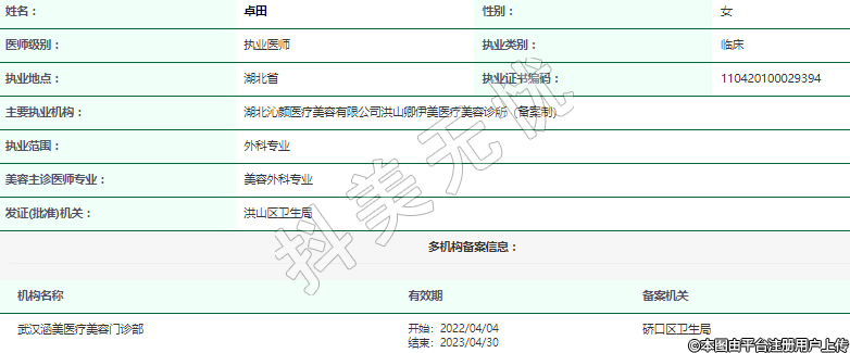 主要執(zhí)業(yè)機(jī)構(gòu):湖北沁顏醫(yī)療美容有限公司洪山卿伊美醫(yī)療美容診所(備案制)