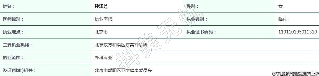 主要執(zhí)業(yè)機構(gòu):北京東方和諧醫(yī)療美容診所