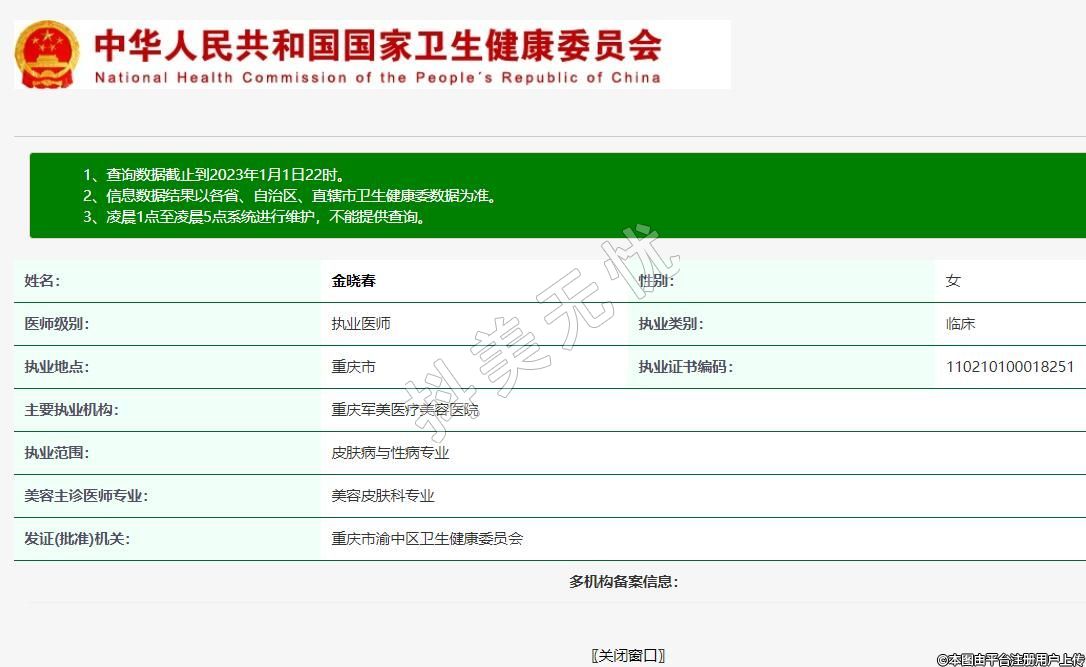 主要執(zhí)業(yè)機構(gòu):重慶軍美醫(yī)療美容醫(yī)院