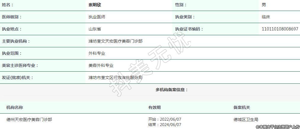 主要執(zhí)業(yè)機(jī)構(gòu):濰坊奎文天宏醫(yī)療美容門診部
