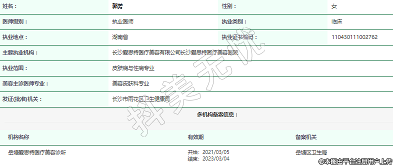 主要執(zhí)業(yè)機構(gòu):長沙愛思特醫(yī)療美容有限公司長沙愛思特醫(yī)療美容醫(yī)院