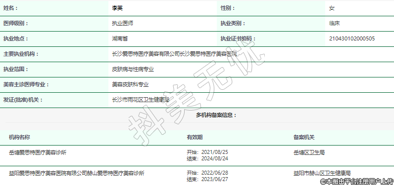 主要執(zhí)業(yè)機(jī)構(gòu):長沙愛思特醫(yī)療美容有限公司長沙愛思特醫(yī)療美容醫(yī)院