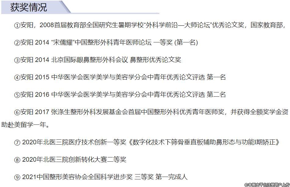 6) Yang An, Dong Li. Morphologic and functional correction for nasal deviation/ A Novel Technique for Short Nose Correction In Asians: Combining M-shaped Conchal Cartilage With Septal Extension Graft/ Short Nose Correction in Asians.第19、20、21屆韓國國際鼻整形年會2015.2016.2018,韓國首爾,大會報告并擔任分會場主席