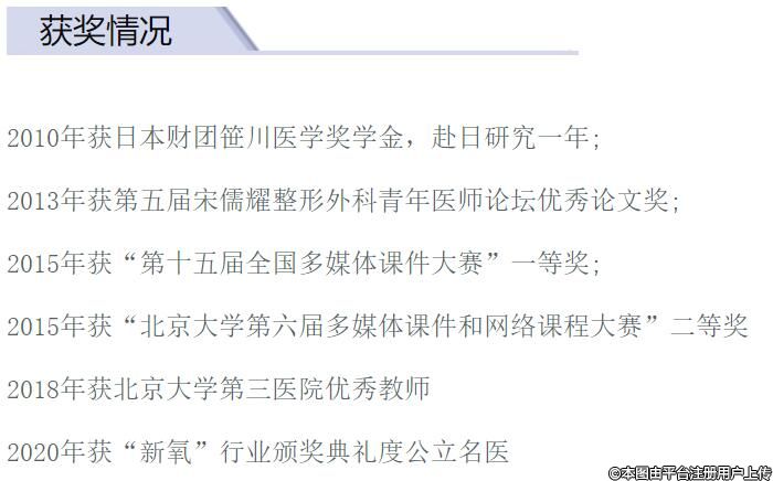 2008年–至今:北京大學(xué)第三醫(yī)院,整形外科,主治醫(yī)師、副主任醫(yī)師 -