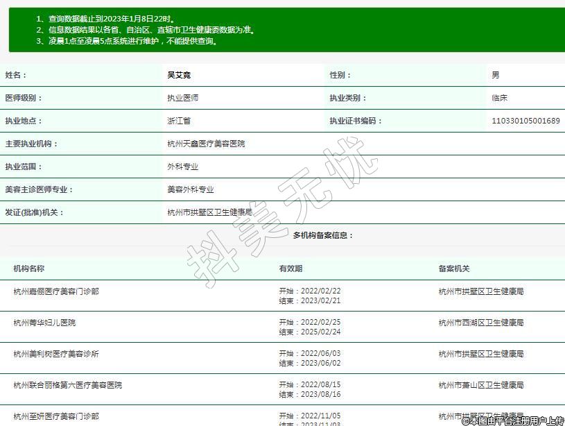 主要執(zhí)業(yè)機(jī)構(gòu):杭州天鑫醫(yī)療美容醫(yī)院