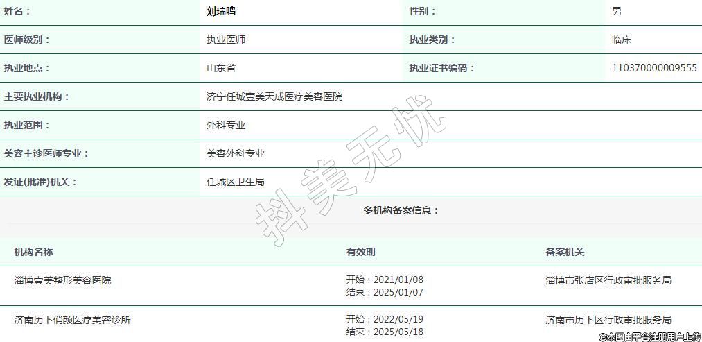 主要執(zhí)業(yè)機構(gòu):濟寧任城壹美天成醫(yī)療美容醫(yī)院