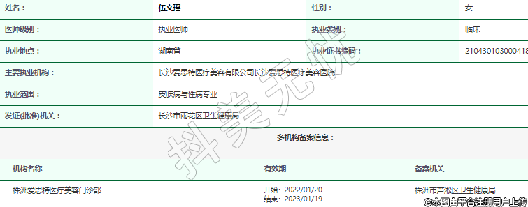 主要執(zhí)業(yè)機構(gòu):長沙愛思特醫(yī)療美容有限公司長沙愛思特醫(yī)療美容醫(yī)院