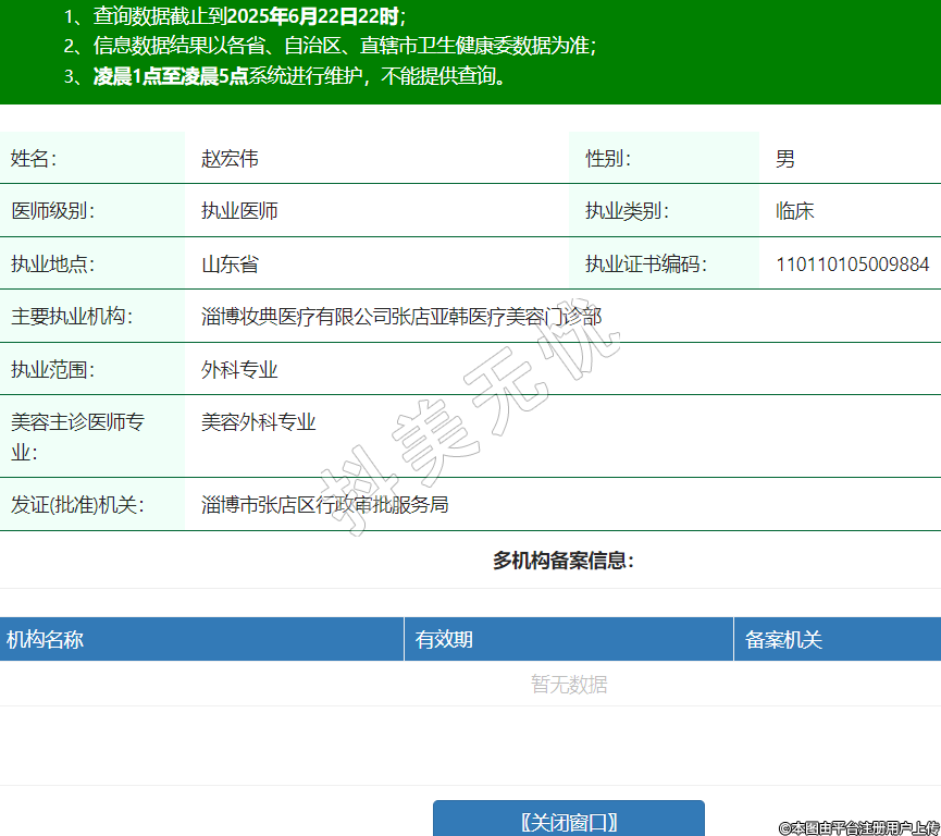 姓名:趙宏偉性別:男醫(yī)師級(jí)別:執(zhí)業(yè)醫(yī)師執(zhí)業(yè)類別:臨床執(zhí)業(yè)地點(diǎn):山東省執(zhí)業(yè)證書編碼:110110105009884主要執(zhí)業(yè)機(jī)構(gòu):淄博妝典醫(yī)療有限公司張店亞韓醫(yī)療美容門診部執(zhí)業(yè)范圍:外科專業(yè)美容主診醫(yī)師專業(yè):美容外科專業(yè)發(fā)證(批準(zhǔn))機(jī)關(guān):淄博市張店區(qū)行政審批服務(wù)局