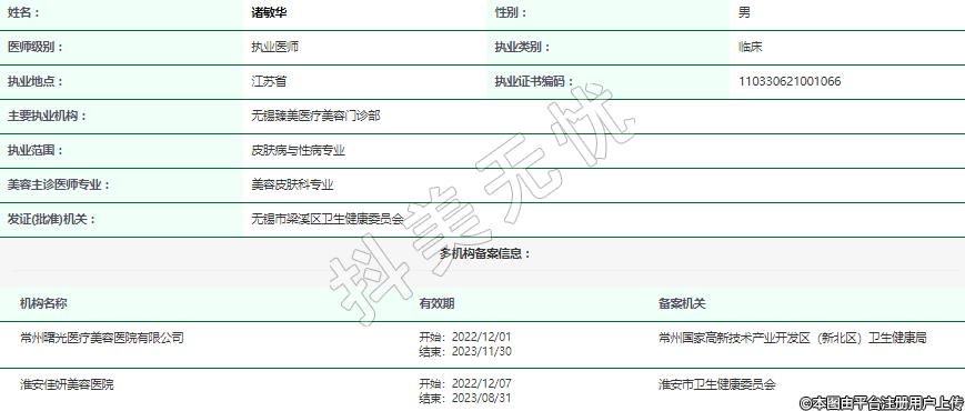 主要執(zhí)業(yè)機(jī)構(gòu):無錫臻美醫(yī)療美容門診部