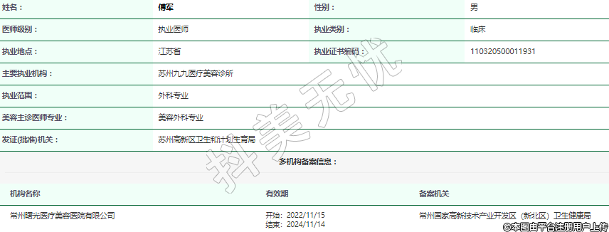 主要執(zhí)業(yè)機構:蘇州九九醫(yī)療美容診所