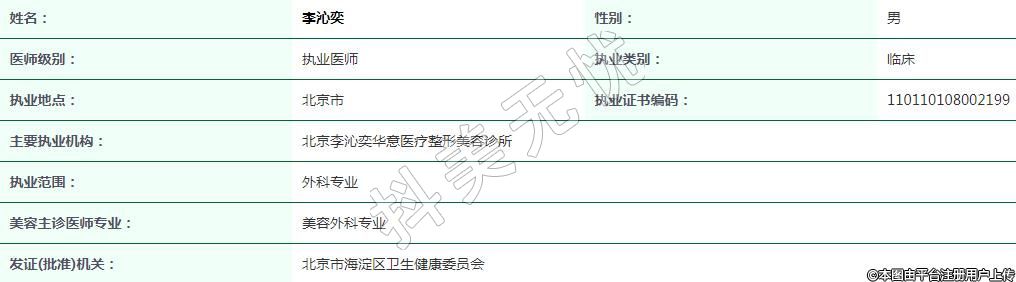北京李沁奕華意醫(yī)療美容執(zhí)業(yè)醫(yī)師