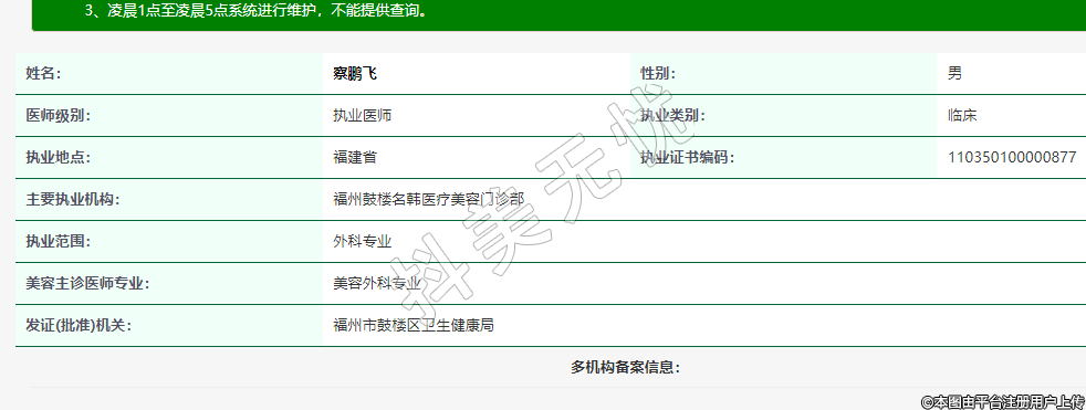 主要執(zhí)業(yè)機構(gòu):福州鼓樓名韓醫(yī)療美容門診部