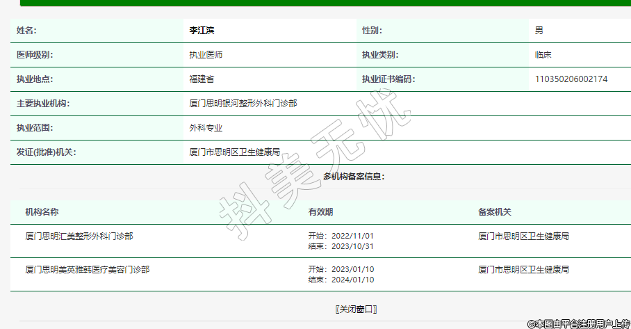 主要執(zhí)業(yè)機構:廈門思明銀河整形外科門診部