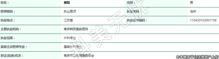 主要執(zhí)業(yè)機構(gòu):南京韓辰美容醫(yī)院
