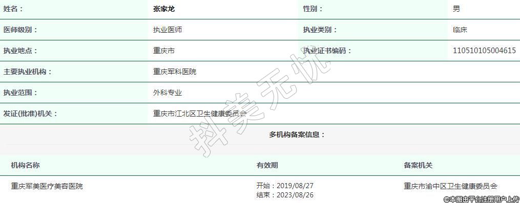重慶軍美醫(yī)療美容執(zhí)業(yè)醫(yī)師 -