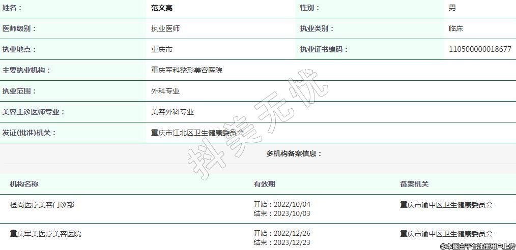 主要執(zhí)業(yè)機(jī)構(gòu):重慶軍科整形美容醫(yī)院