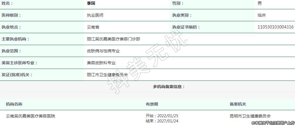 主要執(zhí)業(yè)機構(gòu):麗江吳氏嘉美醫(yī)療美容門診部