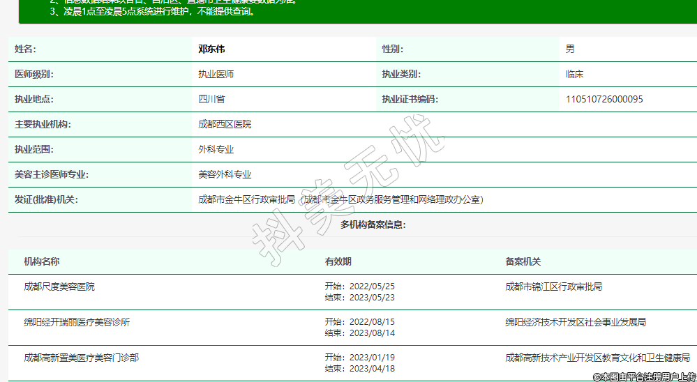 鄧東偉就職于成都西區(qū)醫(yī)院醫(yī)療美容科,擔(dān)任科主任一職。