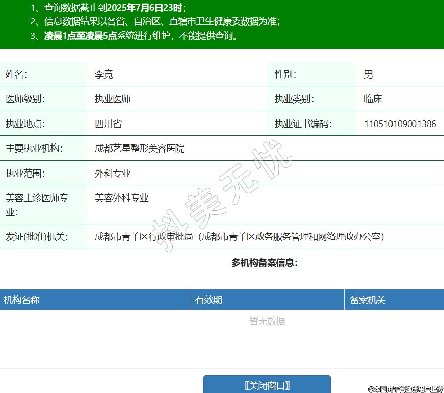 姓名:李競性別:男醫(yī)師級(jí)別:執(zhí)業(yè)醫(yī)師執(zhí)業(yè)類別:臨床執(zhí)業(yè)地點(diǎn):四川省執(zhí)業(yè)證書編碼:110510109001386主要執(zhí)業(yè)機(jī)構(gòu):成都藝星整形美容醫(yī)院執(zhí)業(yè)范圍:外科專業(yè)美容主診醫(yī)師專業(yè):美容外科專業(yè)發(fā)證(批準(zhǔn))機(jī)關(guān):成都市青羊區(qū)行政審批局(成都市青羊區(qū)政務(wù)服務(wù)管理和網(wǎng)絡(luò)理政辦公室)