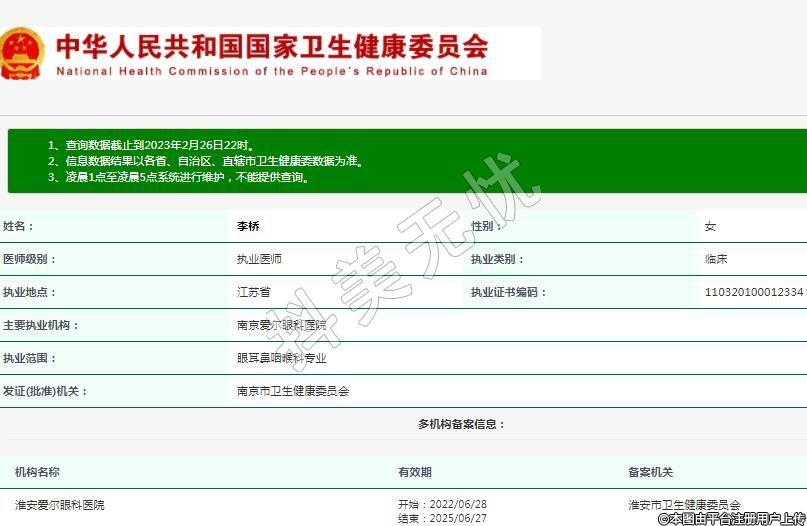 主要執(zhí)業(yè)機構(gòu):南京愛爾眼科醫(yī)院