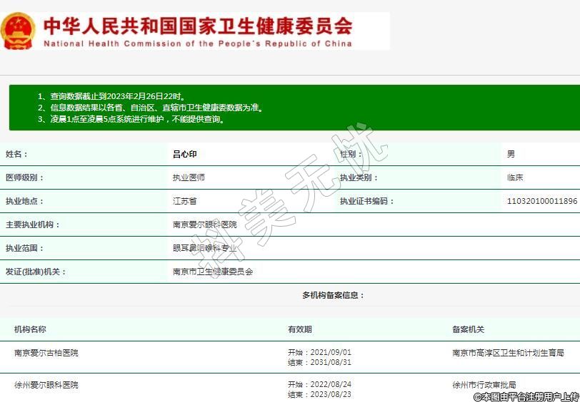 主要執(zhí)業(yè)機(jī)構(gòu):南京愛爾眼科醫(yī)院