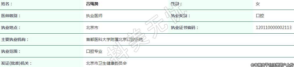 執(zhí)業(yè)范圍:口腔專業(yè)