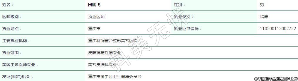 重慶新銅雀臺(tái)醫(yī)療美容執(zhí)業(yè)醫(yī)師