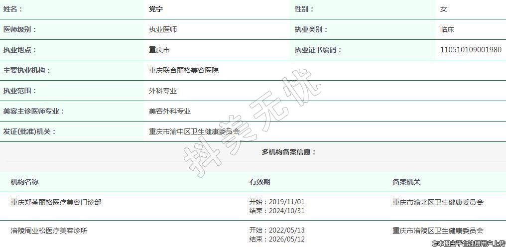主要執(zhí)業(yè)機構(gòu):重慶聯(lián)合麗格美容醫(yī)院