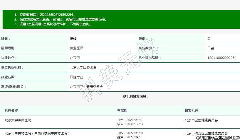 主要執(zhí)業(yè)機構(gòu):北京大學(xué)口腔醫(yī)院