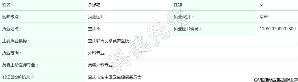 主要執(zhí)業(yè)機(jī)構(gòu):重慶聯(lián)合麗格美容醫(yī)院