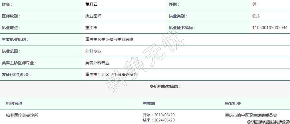 重慶鉑菲醫(yī)療美容執(zhí)業(yè)醫(yī)師 -