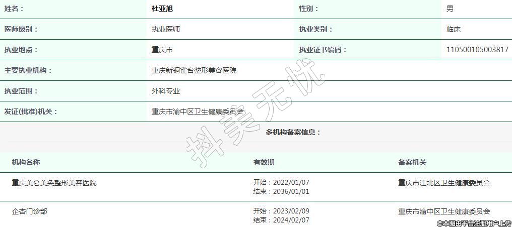 重慶新銅雀臺(tái)醫(yī)療美容執(zhí)業(yè)醫(yī)師